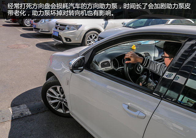 3.原地轉(zhuǎn)向打輪,方向打死,損耗汽車轉(zhuǎn)向助力泵,加劇其老化。 在很小的車位停車時(shí),很多人都習(xí)慣將輪打死再倒車,因?yàn)檐囄槐緛砭托。砸M可能地讓汽車轉(zhuǎn)向角度更大。經(jīng)常打死方向盤會(huì)損耗汽車的方向助力泵,時(shí)間長了會(huì)加劇助力泵皮帶老化,助力泵壞掉對(duì)轉(zhuǎn)向機(jī)也有影響。正確的做法是不要將輪打死,留出一定余量。